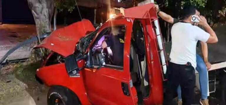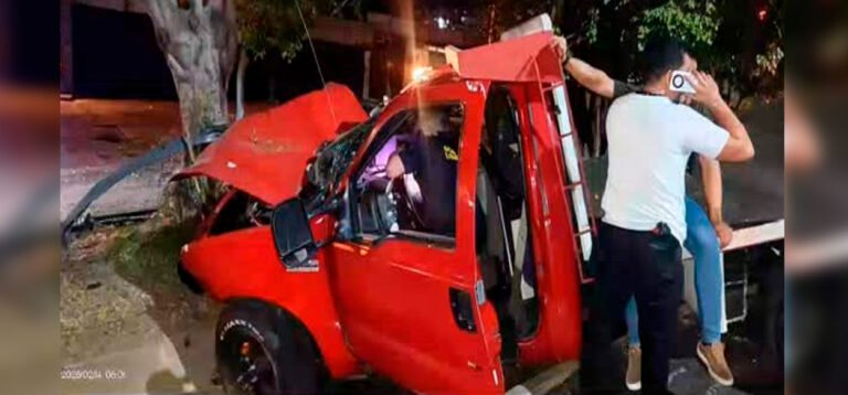 El vehículo de carga terminó en el canal de aguas pluviales, y los heridos tuvieron
