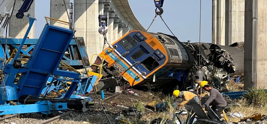 El Gobierno de Nakhon Ratchasima, la ciudad donde se produjo el accidente, informó a través de Facebook que la grúa sostenía un puente ferroviario en construcción y «se desplomó sobre el tren de pasajeros, provocando un descarrilamiento y un incendio en el lugar».