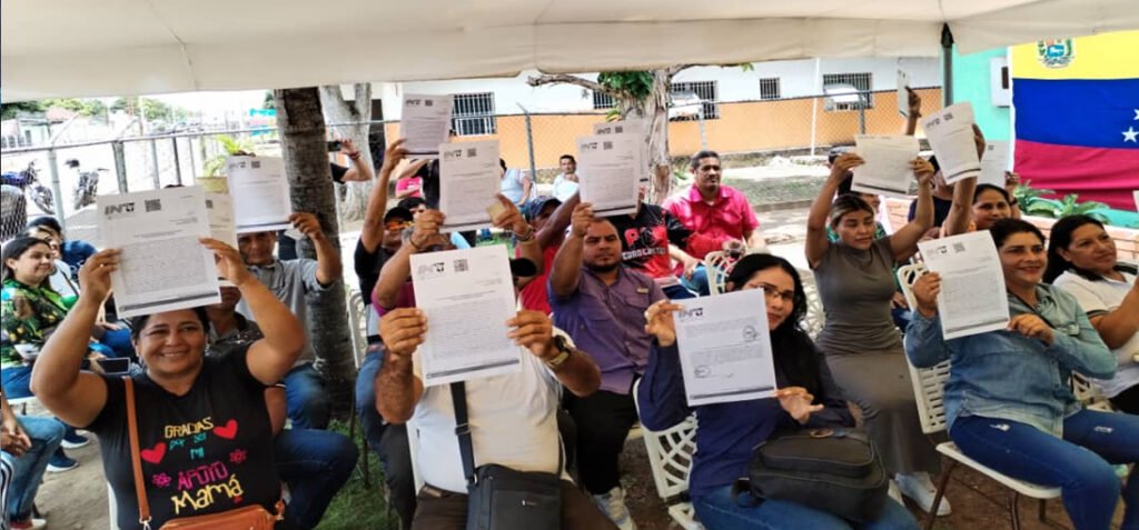 Adjudicados 19 títulos de tierra a productores del municipio Cedeño-. Cumpliendo con las políticas del Gobierno Bolivariano, esta semana, el director general de la alcaldía de Cedeño, Darwin Agreda, en representación del alcalde Daniel Monteverde, acompañó a miembros del Instituto Nacional de Tierras (INTI) en la entrega de 19 títulos a productores de las parroquias Caicara, Areo y Viento Fresco.