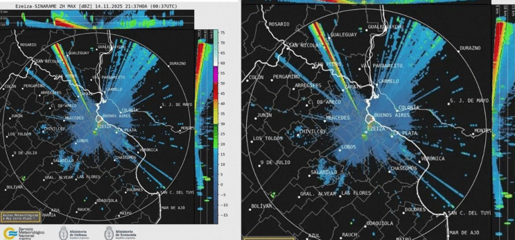 El radar de Ezeiza detectó que la nube tóxica se dirige a las localidades cercanas de San Vicente y Cañuelas, por lo que se recomienda a la población usar barbijos, cerrar ventanas y permanecer dentro de los hogares, informa el sitio local Tiempo AMBA.