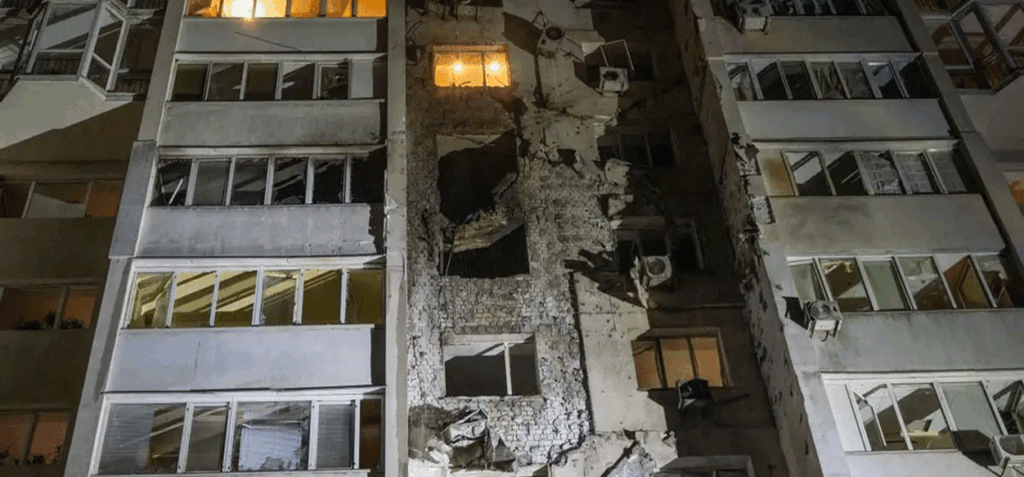 El gobernador precisó que la caída de restos de los drones interceptados dañó tres edificios residenciales y dos aulas de una escuela de la zona, lo que dejó tres lesionados, entre ellos dos niños.