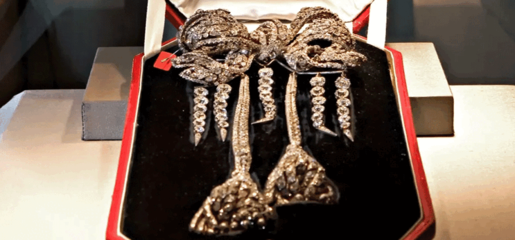 El broche de lazo de plata, oro y diamantes formaba originalmente la hebilla de un cinturón de diamantes de 4.000 piedras que se exhibió en la Exposición Universal de 1855, antes de que lo usara la emperatriz Eugenia, según el sitio web del Louvre.