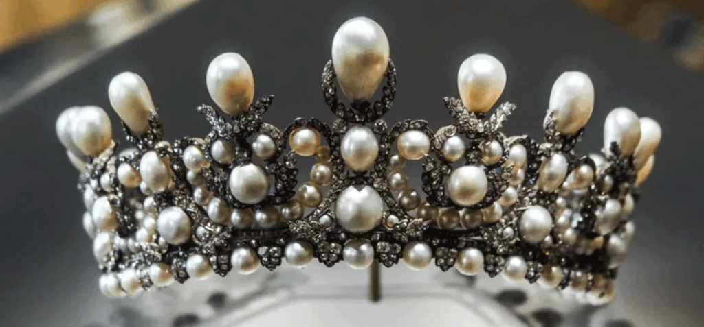 La diadema de perlas fue realizada para Eugénie por el joyero Alexandre-Gabriel Lemonnier en 1853 y contiene 212 perlas y 1.998 diamantes, según el Louvre.