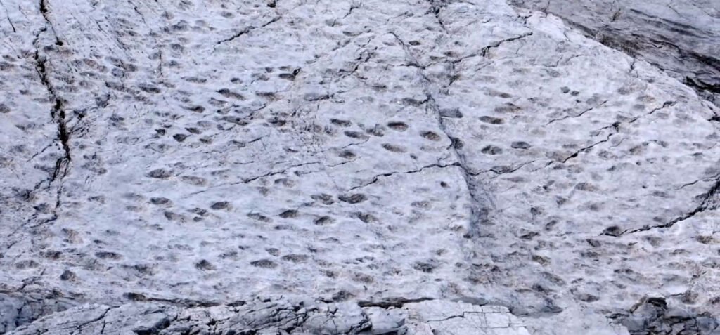 Descubren miles de huellas fósiles de dinosaurios en Italia-. Miles de huellas fósiles estampadas en las paredes verticales inaccesibles de la montaña por los llamados ‘prosaurópodos’, dinosaurios herbívoros de cuello largo que poblaron estas zonas hace 210 millones de años, en el Triásico Tardío.