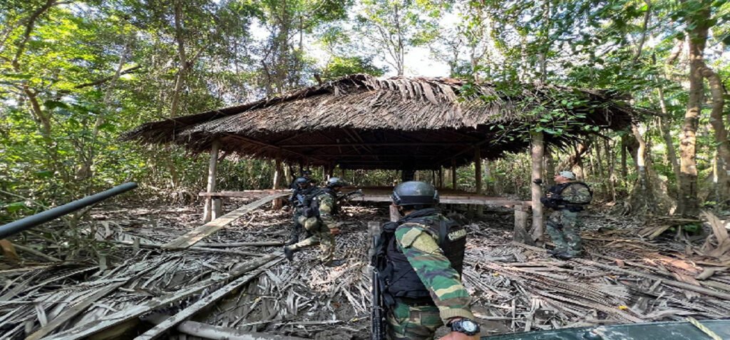 Asimismo, se logra la destrucción de campamentos logísticos utilizados para el narcotráfico. También se realiza la incautación de pertrechos alusivos a grupos irregulares como chalecos de asalto, fornituras y uniformes tácticos. Durante esta operación, de igual forma se incautaron 31 mil 500 litros de combustible tipo diésel, 252 detonadores eléctricos, seis pistolas calibre 9 mm y 12 motores fuera de borda.