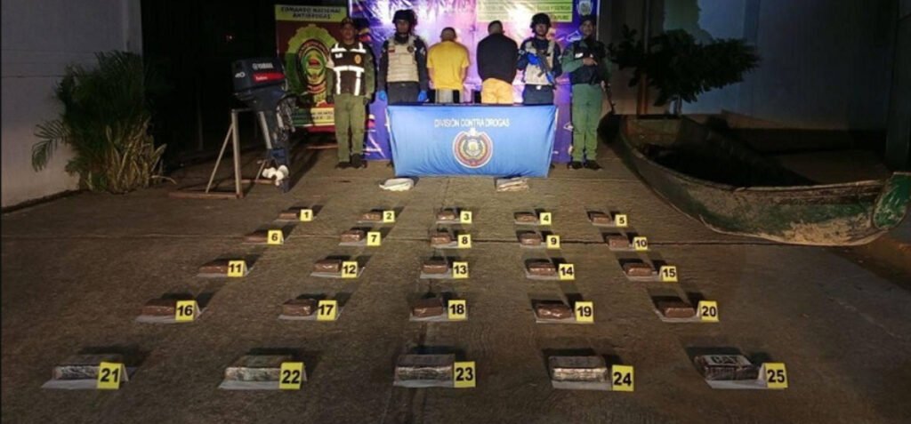 Durante la operación, los efectivos policiales incautaron una embarcación tipo bongo de color verde, equipada con un motor fuera de borda, marca Yamaha Enduro 40 de color gris, utilizada presuntamente para el transporte fluvial de sustancias estupefacientes.