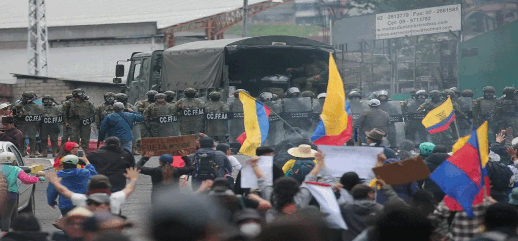 Horas atrás, la CONAIE denunció el ingreso de la fuerza pública a domicilios para capturar a presuntos manifestantes del paro nacional. «Ingresar arbitrariamente a domicilios para capturar y golpear salvajemente a personas, es un crimen de Estado y no puede ser tolerado en ninguna democracia».