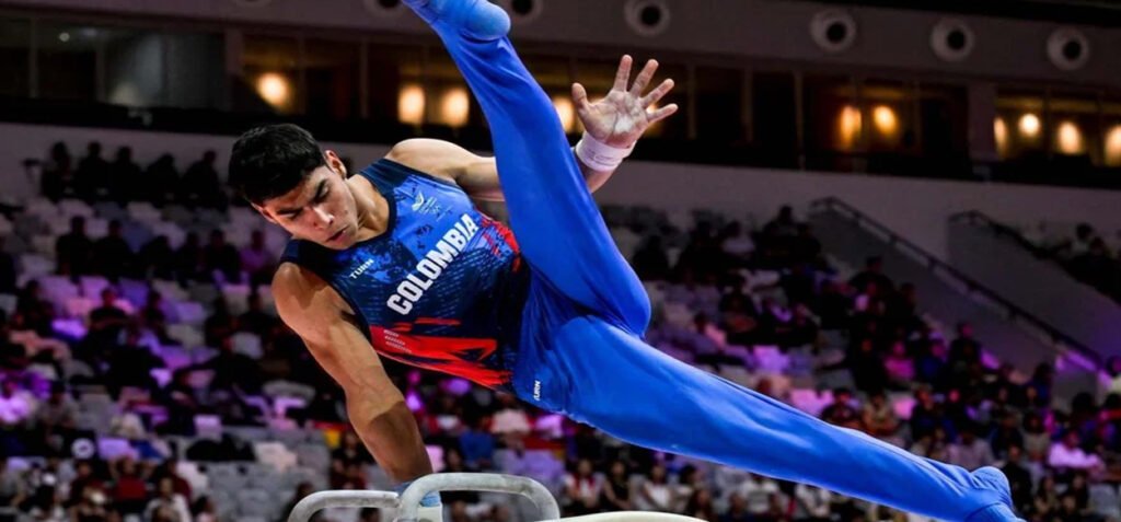 El colombiano Ángel Barajas brilla en la Copa Mundo de gimnasia artística-. El gimnasta colombiano Ángel Gabriel Barajas Vivas volvió a sorprender por su talento este viernes 20 de febrero al dominar la ronda de clasificación en la modalidad de la barra fija en la parada de Cottbus, Alemania, de la Copa Mundo de gimnasia artística.