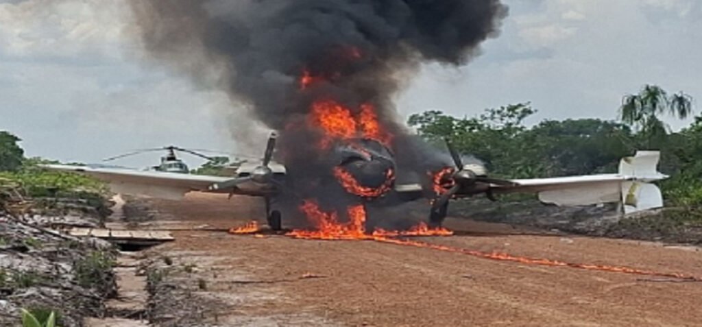 FANB destruye aeronave del narcotráfico en Amazonas-. Este lunes, en el marco de la operación “Escudo Bolivariano”, la REDI N° 6 Guayana, en el estado Amazonas, localizó y destruyó una aeronave de ala fija, modelo Baron 58, siglas PR-NIB, color blanco con franjas azul, utilizada por los TANCOL y Grupo Estructurado de Delincuencia Organizada para el tráfico ilícito internacional de drogas.