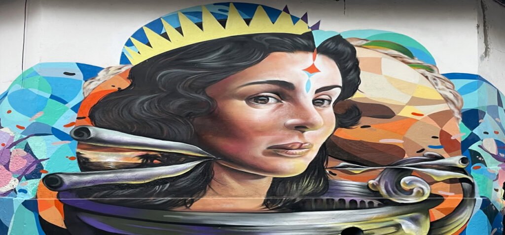 El mural, titulado Reina pepiada, elaborado por Wolfgang Salazar Badsura, reconocido por otros murales de san José Gregorio Hernández, Simón Bolívar y el cantante Oscar D’León.