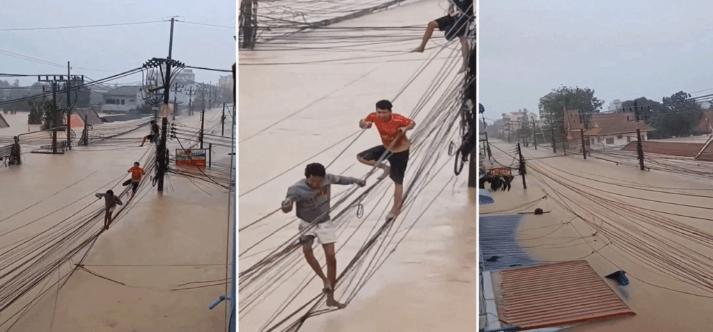 Un video muestra a ciudadanos tailandeses obligados a desplazarse por tendidos eléctricos para escapar de las graves inundaciones que afectan al sur del país