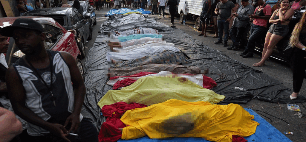 Megaoperativo antidrogas en Río de Janeiro deja al menos 64 muertos. Al menos 54 personas murieron, entre ellas cuatro agentes, y 81 fueron detenidas este martes 28 de octubre, en medio de un megaoperativo policial contra el Comando Vermelho, una de las más poderosas bandas del crimen organizado de Río de Janeiro. El gobernador estatal, Cláudio Castro, calificó la acción como «la mayor operación en la historia de Río de Janeiro«.