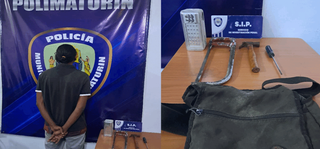 Polimaturín capturó a un sujeto por intentar hurtar un galpón en la avenida Orinoco-. Durante la noche del día de ayer, lunes, funcionarios de Polimaturín, adscritos al Cuadrante de Paz 77, mientras realizaban labores de seguridad y prevención, detuvieron a un sujeto por encontrarse presuntamente hurtando dentro de un galpón ubicado en la avenida Orinoco, sector Las Brisas, parroquia San Simón.
