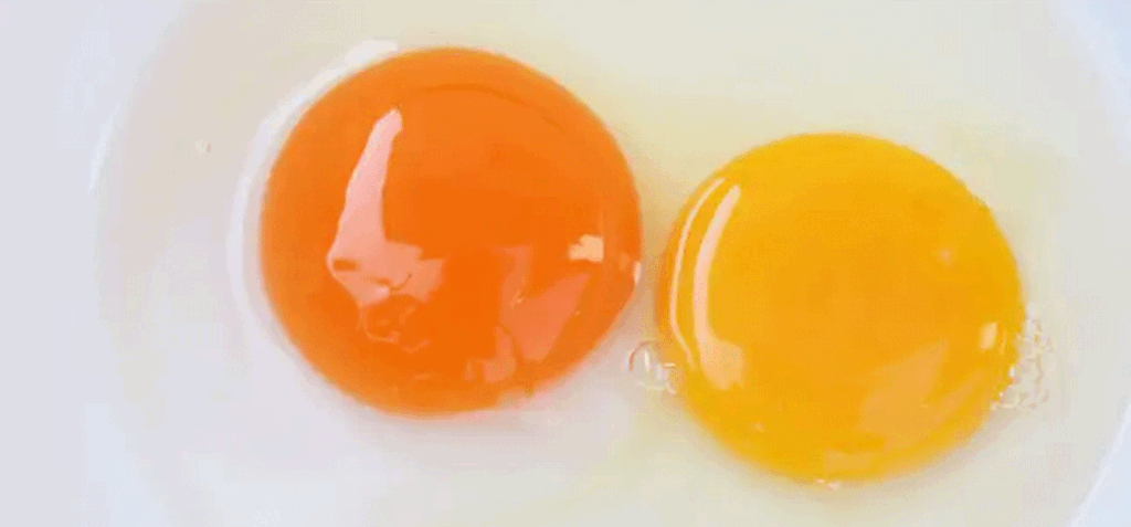 - Yema naranja intensa: aparece cuando las gallinas consumen caléndula, pimientos rojos, zanahoria o insectos, o cuando tienen acceso a pastos naturales.