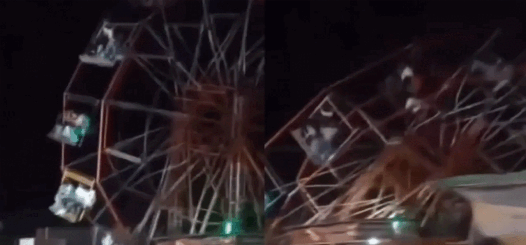 El incidente, que fue captado en video por testigos presenciales, ocurrió alrededor de la medianoche. Según los reportes preliminares, la atracción mecánica, una rueda de la fortuna de aproximadamente 60 pies de altura, apenas había completado dos giros cuando la falla estructural provocó el colapso inminente.