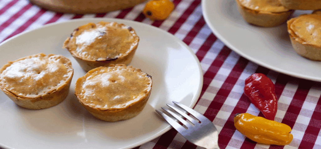 Rellenamos con el guiso hasta la altura máxima del molde y cubrimos con masa estirada, abrimos unos huequitos para que no se cuarteen cuando vayan al horno; se llevan al horno a 350 grados hasta que la masa de arriba dore porque así sabremos que el resto está listo.