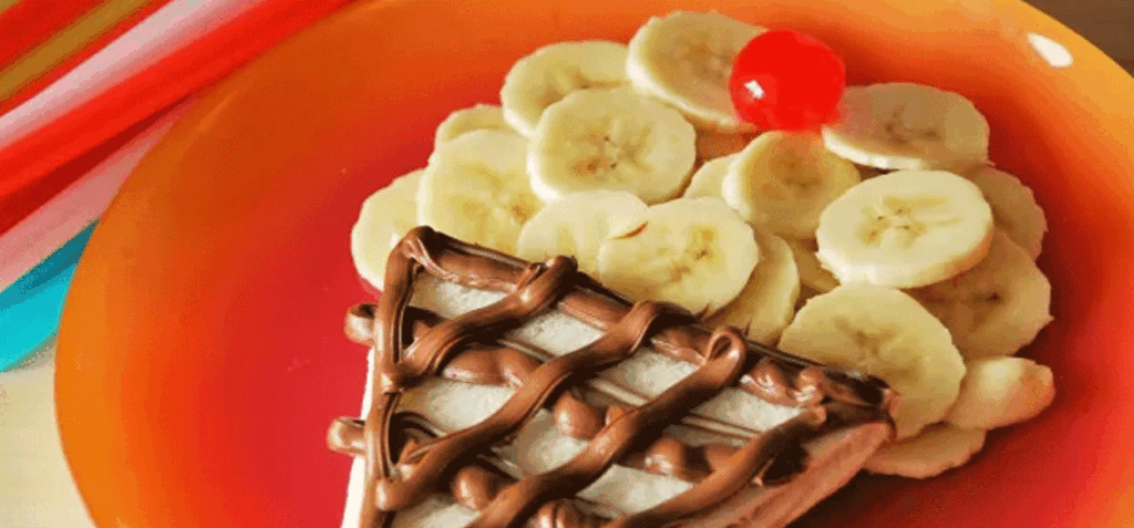 Un desayuno o una merienda diferente y deliciosa. Sorprende a tus hijos con esta original receta de un sándwich con forma de helado, hecho con chocolate y plátano