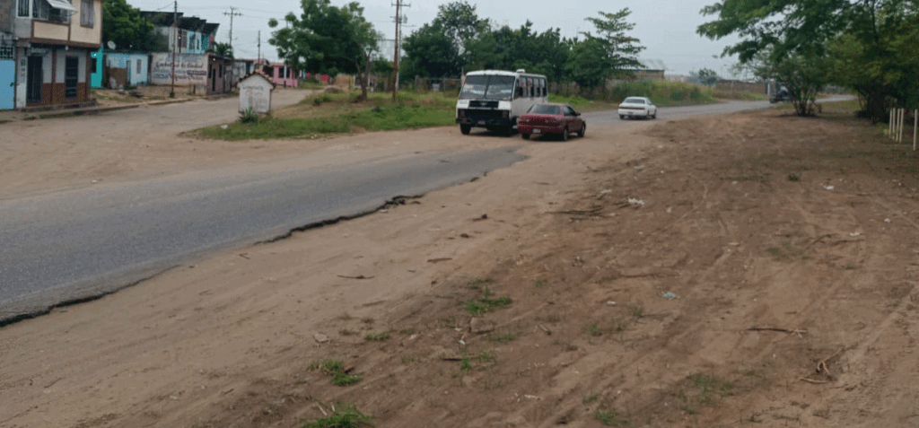 Nilda Rojas, vecina de la zona, añade que a la falta de asfalto se le suman otros factores que aumentan la vulnerabilidad de quienes transitan por allí. Rojas destaca que la maleza alta en los bordes de la vía y la ausencia de alumbrado público crean un ambiente de inseguridad al caer la tarde. Al tener que detenerse casi por completo para pasar por el tramo frente a las Casas Chinas o para ceder el paso a otro vehículo, los conductores y sus pasajeros quedan expuestos.