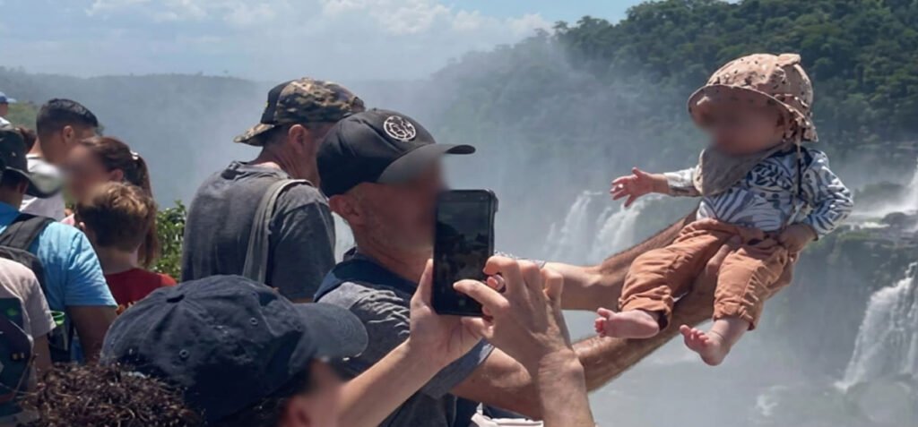 Turista arriesga a un bebé en las Cataratas del Iguazú por una foto-. Un perturbador momento se vivió en las Cataratas del Iguazú, un conjunto de cascadas que se ubican en la frontera entre Argentina y Brasil, luego que un turista pusiera en riesgo la vida de un bebé solo por una fotografía.