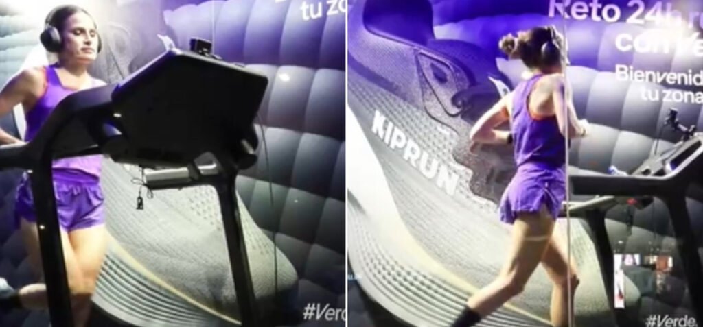 Para este reto, la navarra ha apostado por un modelo de entrenamiento diario amortiguado, las Kipride Max de Kiprun (la marca de atletismo de Decathlon), en lugar de las zapatillas de competición con placa de carbono que suele utilizar para las maratones. La idea de la marca es que la tienda se convierta «en punto de encuentro para la comunidad runner» y se hará un entrenamiento a la hora de inicio del reto. «Durante el horario comercial, quienes se acerquen podrán subirse a otra cinta habilitada en el espacio y sumar kilómetros de forma simbólica, formando parte de la experiencia y acompañando el reto desde dentro», invita la firma.